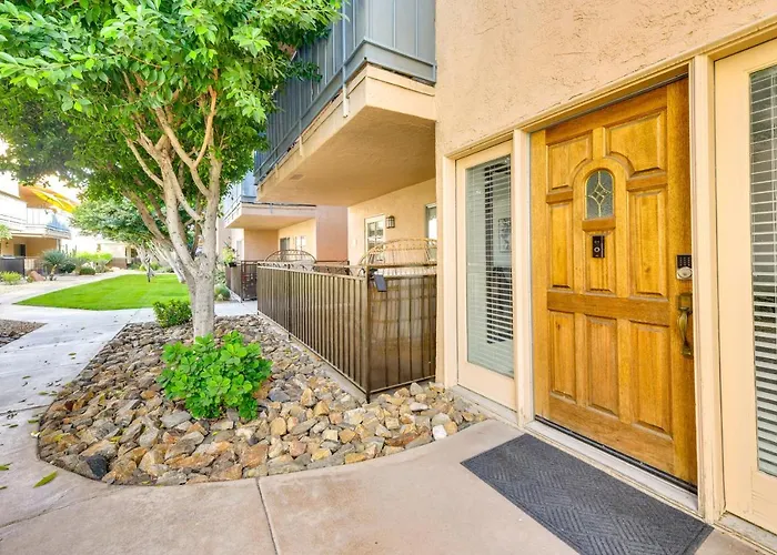 Private Patio, Community Perks Palm Springs Condo o powierzchni 111 m² oferuje jacuzzi, które zapewniają jeszcze przyjemniejszy pobyt. Ogród botaniczny i kaktuarium Moorten znajduje się w odległości 3 km od 2-pokojowego apartamentu, natomiast Palmas de Gran Canaria znajduje się w odległości 25 min pieszo.